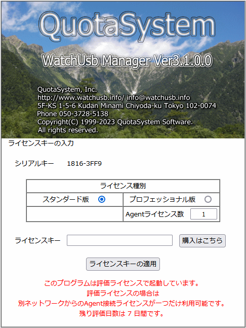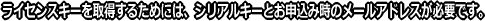 シリアルキーは管理画面の「ライセンス」タブに表示されています。